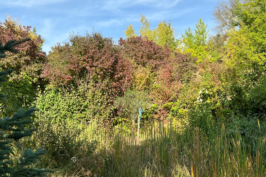 Drei unserer Bäume hatten es etwas weiter und wurden daher direkt an der Dornhaldenstraße verladen. Unser Sanddorn wurde im Biotop der Kinder- und Jugendfarm Weilimdorf gepflanzt. Er scheint dort einen perfekten Platz gefunden zu haben – er geht so in der Umgebung auf, dass er auf dem Foto kaum zu erkennen ist. Suchbild: Wer findet ihn!?